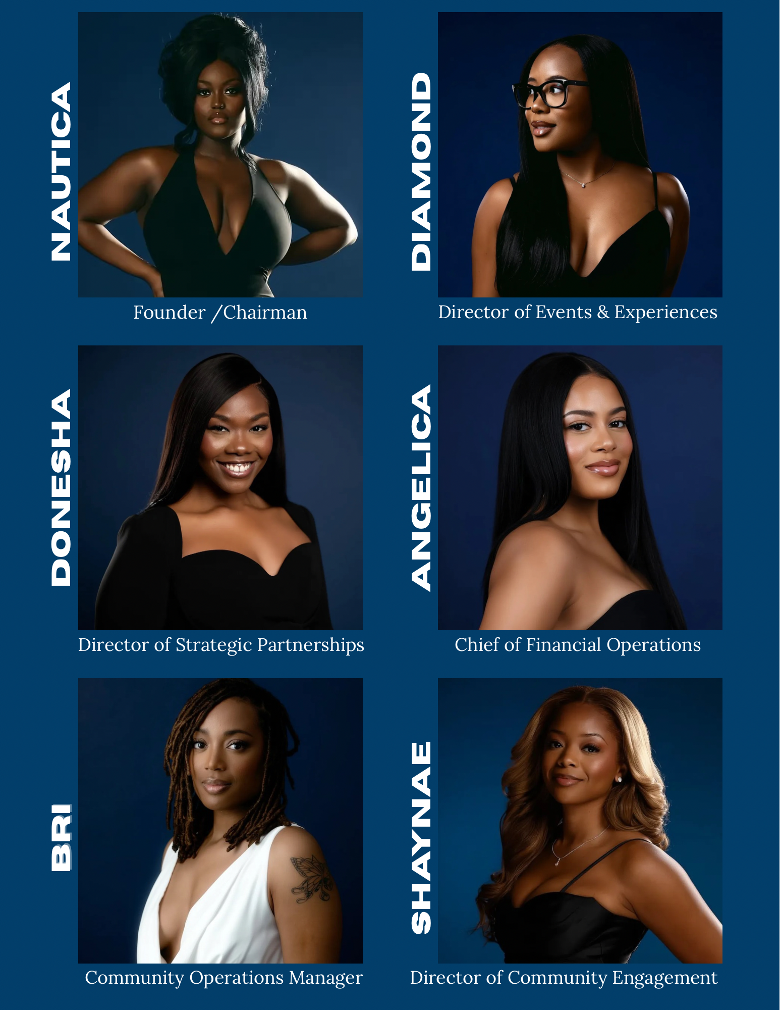 Meet the Ladies of the Board — a collective of dynamic, purpose-driven women chosen not only for their individual excellence but for the integrity, grace, and leadership they embody. Each woman brings a unique craft, professional expertise, and lived experience that strengthens our mission and reflects the true essence of femininity: resilience, compassion, wisdom, and power. They are visionaries in their fields, nurturers in their communities, and leaders who understand that true influence is rooted in service, authenticity, and upliftment. United by shared values and diverse talents, these women stand for collaboration over competition, growth over limitation, and empowerment over exclusion. They lead with both strength and softness, proving that femininity is not a weakness but a force — one that builds, heals, inspires, and transforms. Carefully chosen for what they represent and how they show up in the world, our board members are the heartbeat of this organization, setting the standard for excellence, sisterhood, and intentional leadership while paving the way for every woman who walks alongside us.